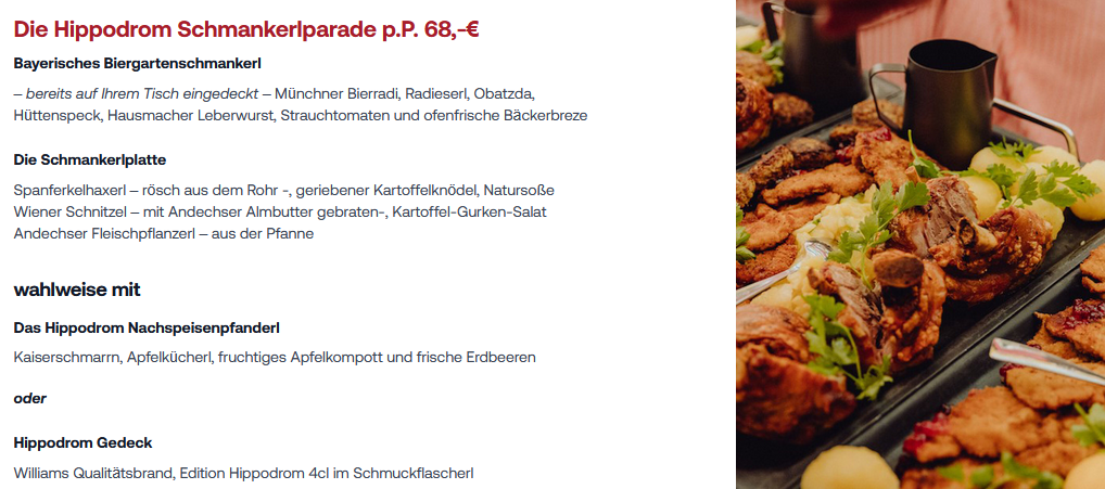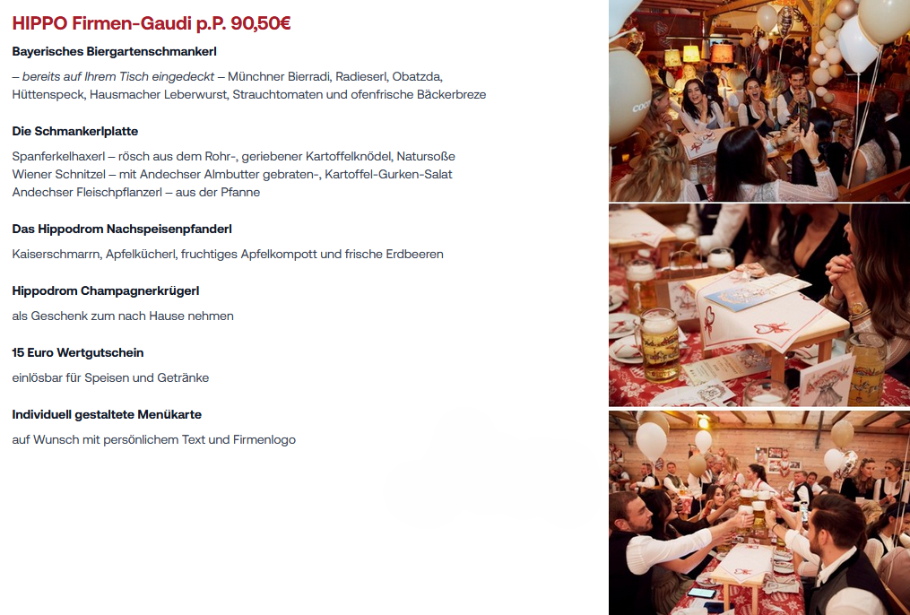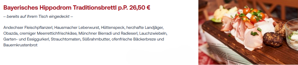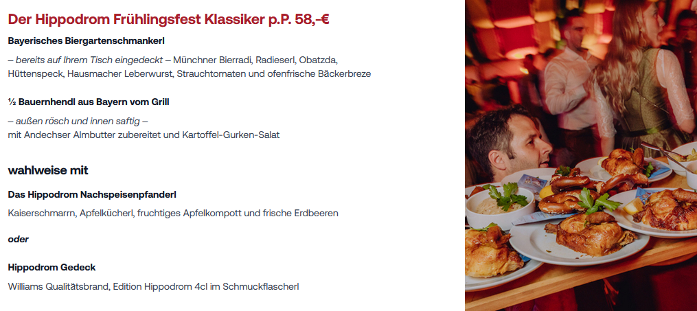Unsere Verzehrpakete und der damit einhergehende Mindestverzehr variiert je nach Wochentag, Reservierungszeit und Platzierungsbereich.